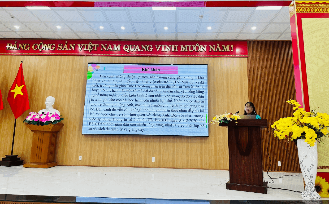 Tại hội nghị, các đại biểu đã tham luận, thảo luận về những thuận lợi và kinh nghiệm có được trong công tác triển khai cho trẻ mẫu giáo LQTA tại đơn vị, đồng thời cũng nêu lên những khó khăn khi triển khai chương trình, chủ yếu là về thiếu trang thiết bị và giáo viên giảng dạy; đồng thời đề xuất những giải pháp để ngành tiếp tục triển khai, chỉ đạo thực hiện chương trình cho trẻ mẫu giáo LQTA tại các trường, cơ sở GDMN trên địa bàn tỉnh đạt hiệu quả.